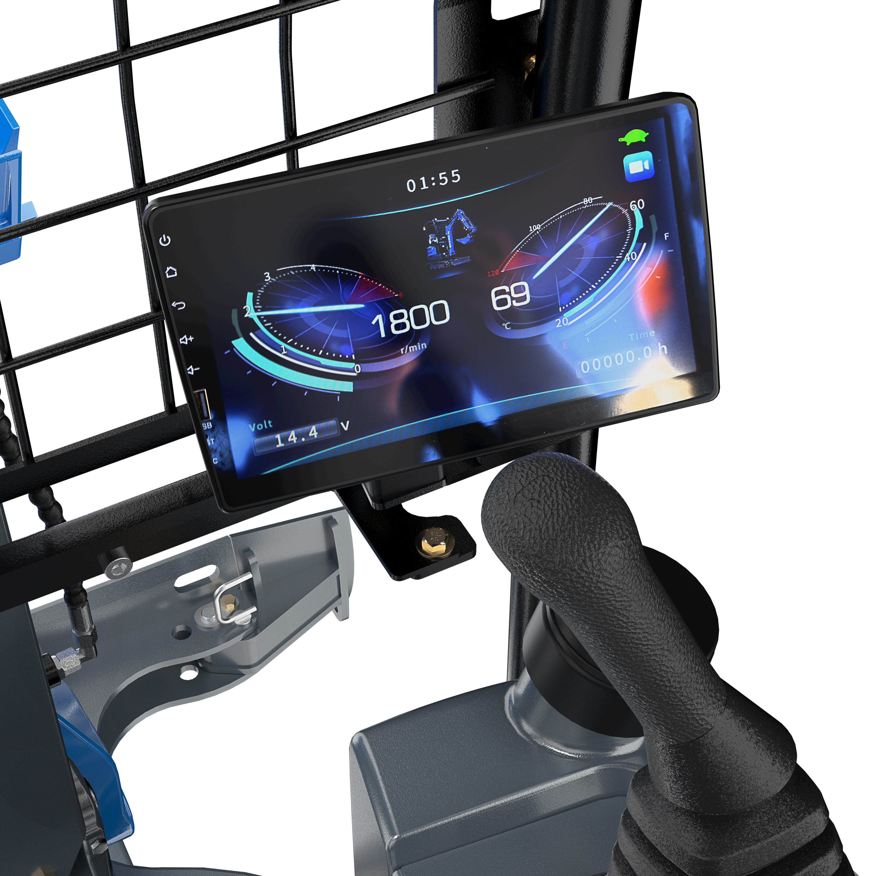 La pantalla inteligente muestra en tiempo real diversos parámetros operativos de la excavadora, como el estado del motor, la presión del aceite, el estado del sistema hidráulico, el consumo de combustible y la temperatura, entre otros, ayudando al operador a controlar en todo momento el estado de funcionamiento del equipo.